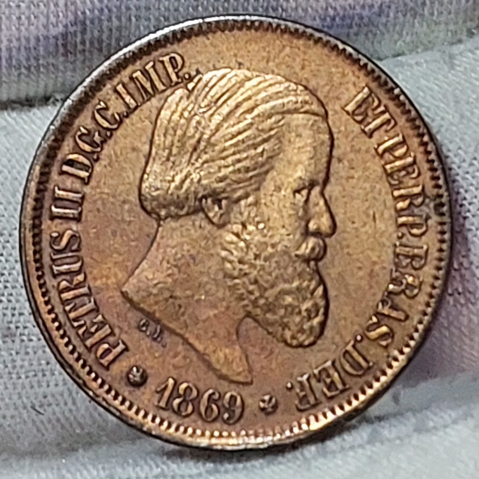 Moeda de 20 Réis do Brasil Ano 1869 sem Ponto – Imperador Pedro II